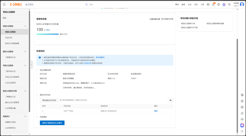 打开阿里云短信认证页面号码认证服务控制台。